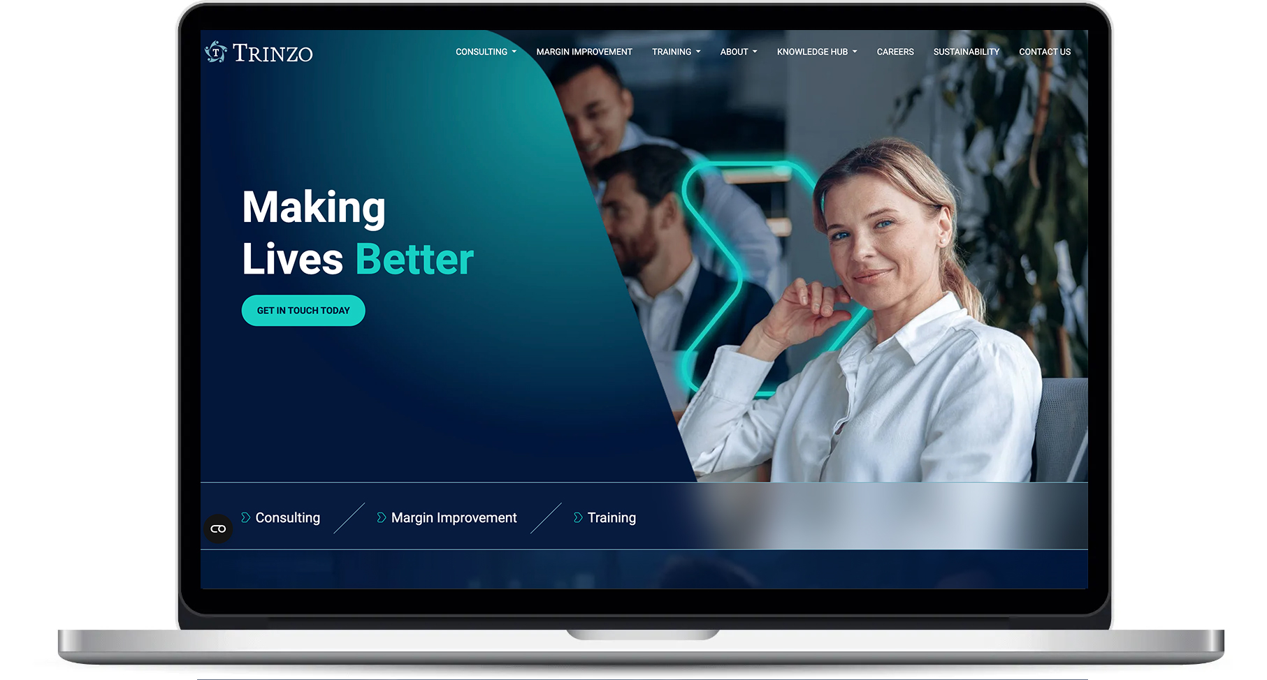 Screenshot from the Trinzo website showing a staff member testimonial